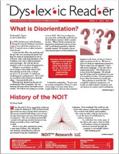 Feature articles include Ron Davis’ explaining of the mental causes of disorientation; a look at the history of NOIT development; and new research by a Davis Facilitator about dyslexic thinking styles.